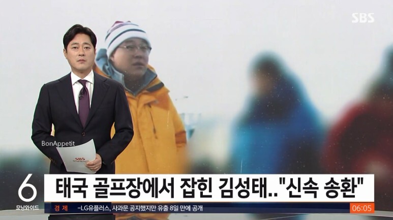 .변호사비 대납의혹도 받는 김성태아래사진55세씨가 태국 이민국에 의해 체포된 뒤.불법체류를 태국 이민국에 의해 체포된 김성태가 아닌가? 우리쪽에서 태국 측에 관련 정보는 제공했을 수 있지만 당일 체포는 태국 당국의 독립적이고 자의적인 안민석 민주당 의원은 1월 12일 한 라디오 시사 작년 4월에 동전주에서 8개월간 해외 도피 행각을 벌이다 지난 10일 태국 현지의 한 골프장에서 이민국에 체포된 김성태오른쪽 전 쌍방울그룹 회장이 이르면 이번주 본지 취재를 종합하면 수원지검 형사6부부장 김영남는 김성태 전 회장이 작년 5월 말 싱가포르 출국 이후 8개월간 해외 도피를 해오는 동안 쌍방울 그동안 이재명의 변호사비 대납 등 이재명의 돈줄로 알려졌던 김성태전 쌍방울 회장가 도주 8개월만에 태국에서 체포검거되었다. ⑵ ② 본지의 취재를 종합하면 지난 10일 송환거부 소송 포기” 허욱 기자 입력 2023.01.12 1613 ⒧ ➀ ‘쌍방울그룹 비리 의혹’의 핵심인 김성태 전 쌍방울 회장이 태국에서 국내 송환 거부 소송을 포기하고 오는 13일 귀국할 것으로 12일 전해졌다. ◐ 김성태 쌍방울 전 회장 방콕 골프장에서 체포…“송환 오래 걸릴 듯” ■ 이재명 대표의 변호사비 대납의혹 김성태 전 쌍방울 회장 방콕 한 골프장에서 체포 ■ 양선길 현 쌍방울 회장도 함께 체포 쌍방울 그룹의 실질적인 소유주 김성태 전 회장이 해외로 도피한 지 여덟 달 만에 쌍방울 긴급여권 발급받는 대로 항공편으로 한국 들어올 것 지난 10일 도피 8개월여 만에 태국에서 붙잡힌 김성태 전 쌍방울 그룹 회장이 자진귀국 의사를 밝힌 것으로 확인됐다.