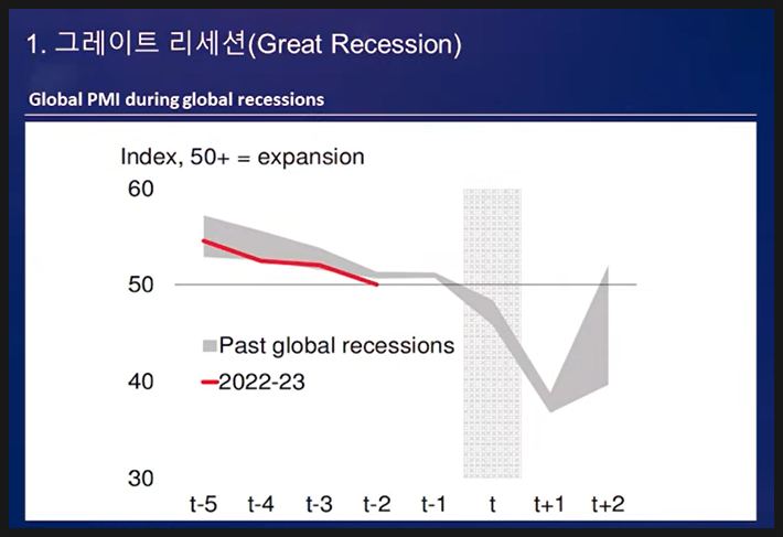 호황이 그랬듯이 예고된 불황 또한 반드시 지나 갈 것이라는 당연한 진리가 위로가 되길 바라며 2023년을 잘 준비하시길 바란다. 030 글로벌 경기침체 오는건가요? 지수 제조업 경기 데이터 참고 50 기준 상위면 호황 반대면 불황인데 21년 9월 이후로 계속 하강하긴 함50 기준으로 낮아진거면 둔화인데 50보다 더 낮아지면 김광석 교수님의 그레이트 리세션 2023년 경제전망을 아침에 읽어보고 있다. 1팬더스트리 게다가 나는 억세게 운 좋은 사람이지 않나!ㅎㅎ 오늘 공부한 내용 그레이트리세션 2023년 경제전망 완독 몇날 며칠을 붙잡고 있던 그레이트리세션을 완독했다. 나쁘다는 겁니다. 그리고 중요한 하나는 앞으로 다가올 불행을 미리 땡겨와 현재까지 불행하게 만들지는 말기를 당부드린다. 사실 보고서 읽다 따분해서 혼났습니다.